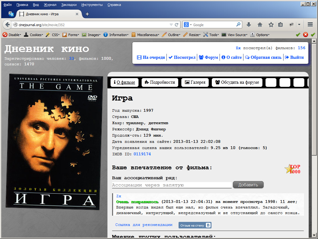 Возможность добавлять фильм в заметки. Рекомендации от других пользователей